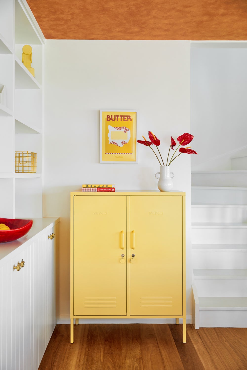 Our professional experience was really different, but we could both see the challenges at each end of the spectrum. For us, Mustard Made, a homewares brand known for its colorful range of vintage-inspired lockers and organizational products, allowed us to create our own sweet spot in the middle.