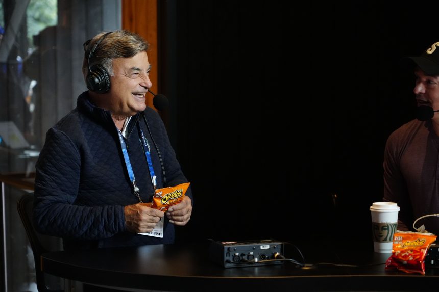 Rick Rizzs, a longtime broadcaster for the team, eats Cheetos.