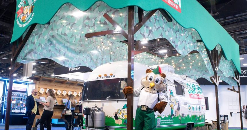 Woodsy—in his Airstream trailer—is touring the US this year to host battery recycling drop-off events.