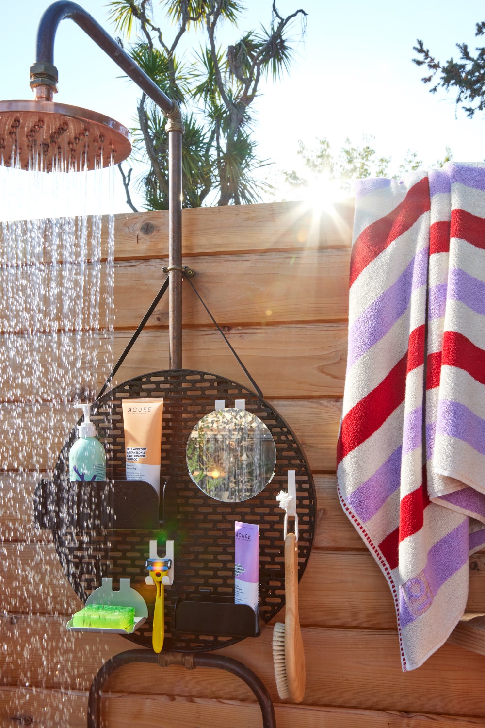 “ It’s really hard, very expensive, and it takes a long time,” Lisa says. Establishing a recycling project was the goal from the start, and over the past several years, Quiet Town has been “charting a map towards circularity” for its sun shower curtains, working with an international recycling community called Precious Plastics, which provides resources to help people tackle the plastic waste problem. The company’s circular sun shower product will launch this summer.